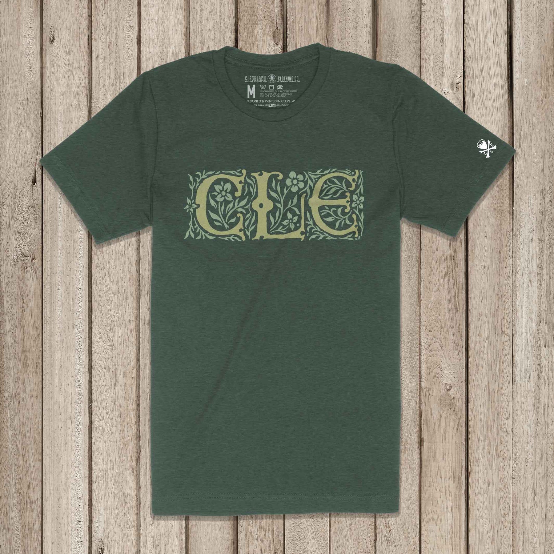 Designed and printed locally in Cleveland on a super soft unisex, heather forest crewneck tee shirt (52% cotton / 48% poly) Polyester retains shape and elasticity; Cotton lends both comfort and durability. Fits like a well-loved favorite, featuring a crew neck, short sleeves and designed with superior Airlume combed and ring-spun cotton.