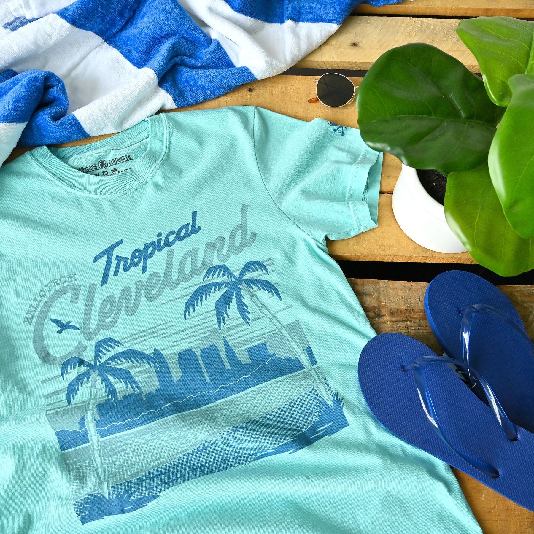 Who says the tropics are only for the ocean? Bring the heat to the North Coast with our cheeky Tropical Cleveland T-shirt – where palm trees meet the Cuyahoga and sunsets glow over Lake Erie.