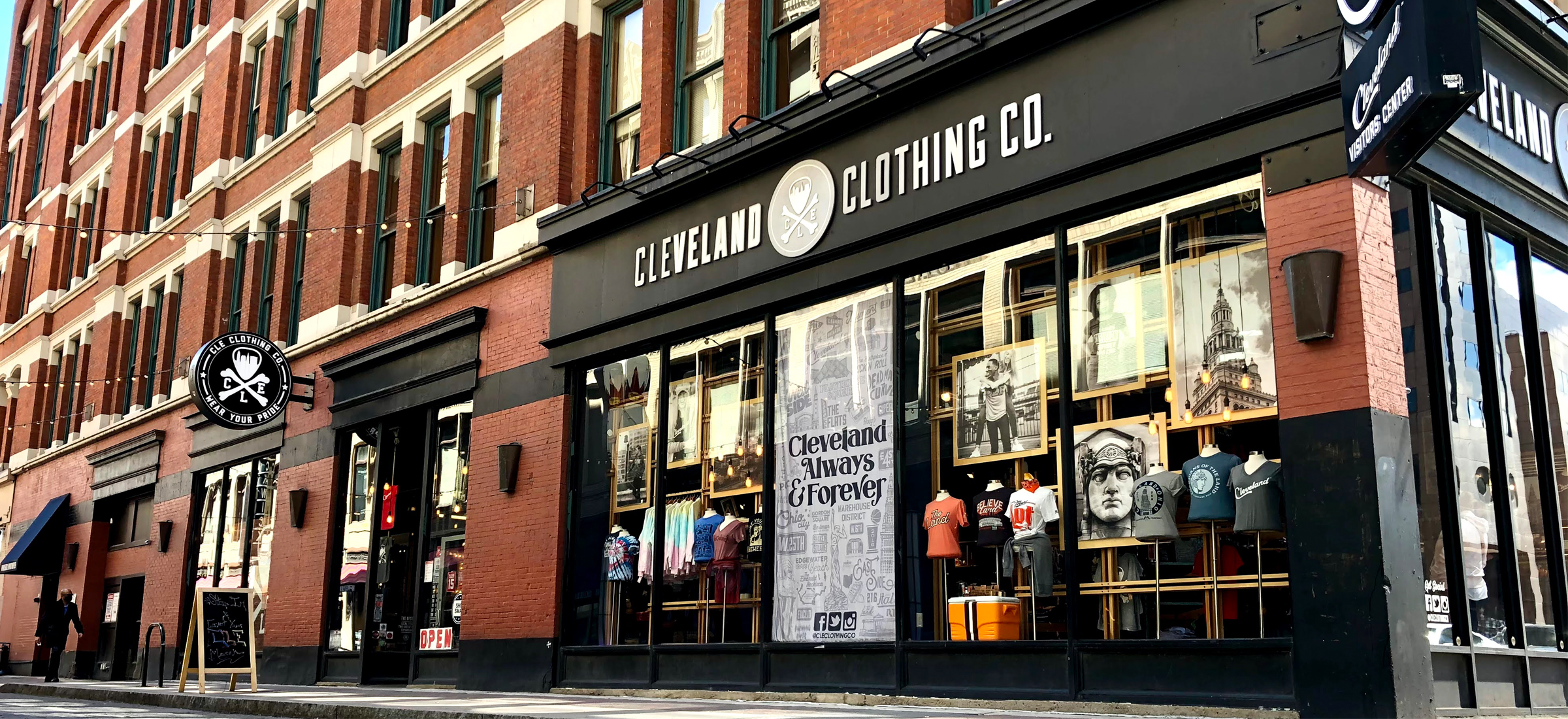 Our flagship store is located in the heart of Cleveland, Ohio on the corner of Euclid Avenue and E. 4th Street near some of the best food and entertainment downtown has to offer. Stop in before or after grabbing coffee, dinner, drinks or a concert! Parking is free on Euclid Avenue and there are numerous parking garages nearby. Stop into our store to find all of your favorite CLE Clothing Co. t-shirts, hoodies, hats, accessories, and more! Have enough of our gear? We also carry apparel, accessories, artwork and so much more from 50+ other local artists and brands we love! We look forward to seeing you!
